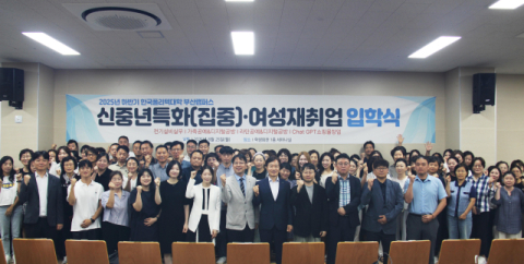한국폴리텍대학 부산캠퍼스(학장 김현환)는 25일 학생회관 세미나실에서 신중년특화(집중) 전기설비실무 과정, 여성재취업 라탄공예&디지털공방 과정, ChatGPT 활용 쇼핑몰창업 및 운영 과정, 가죽공예&디지털공방 과정 등 2025년 하반기 교육과정의 개강식을 개최했다.