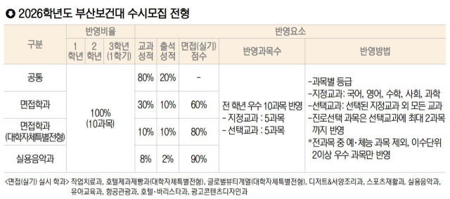 부산보건대학교는 2026학년도 신입생 모집에서 전체 정원 831명 중 96.2%인 800명을 수시 전형으로 선발한다.