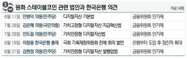 한은-국회 줄다리기에 ‘K스테이블 코인’ 제도화 ‘하세월’