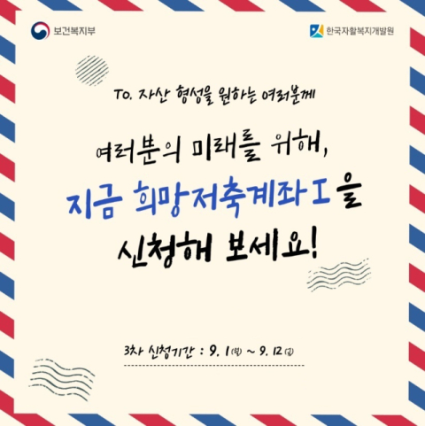 부산진구(구청장 김영욱)는 저소득층 근로의욕 고취 및 탈수급을 위한 자산형성지원사업 ‘희망저축계좌Ⅰ’ 3차 모집을 9월 1일부터 오는 12일까지 진행한다고 밝혔다.