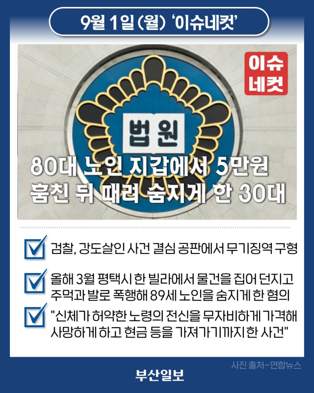 2. 80대 노인 지갑에서 5만원 훔친 뒤 때려 숨지게 한 30대