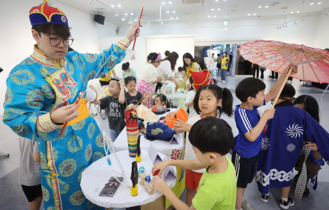 2025년 양성평등주간을 맞아 2일 부산 부산진구청 백양홀에서 열린 다문화 음식 및 문화 체험 ‘너와 나 우리를 그리다’ 행사에서 어린이들이 각 나라의 전통 의상과 놀이 등을 체험하고 있다.