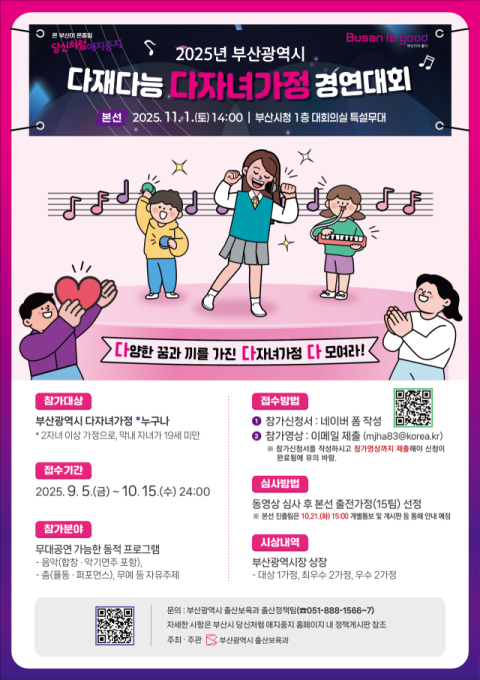 부산시, '다재다능 다자녀가정 경연대회' 참가 가정 모집