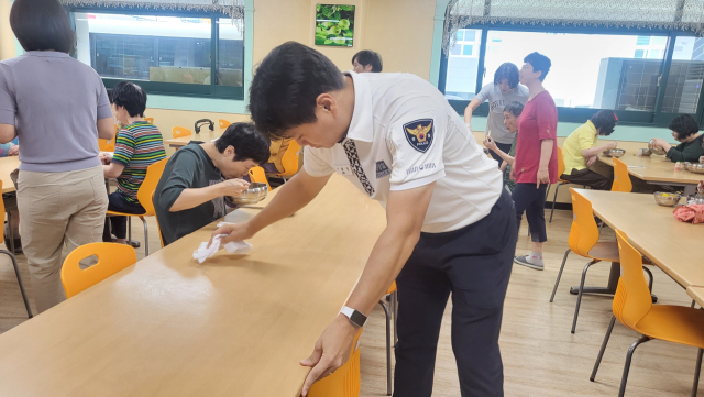한편 사하경찰서 교통과 관리계의 봉사자들도 함께 현장을 지켰다. 이들은 식사 공간을 정리하고, 식탁을 소독하고 닦는 세심한 작업부터 식사를 마친 후의 청소까지 맡으며, 정신장애인분들이 안심하고 편안하게 식사할 수 있도록 뒷받침했다. 눈에 띄지는 않지만 결코 소홀할 수 없는 이들의 조용한 배려는 행사 전체에 따뜻한 온기를 더했다.
