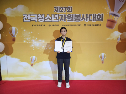 부산 수영구(구청장 강성태)는 8일 KB라이프생명사회 공헌재단과 한국중등교장협의회가 공동주최한 제27회 전국청소년자원봉사대회에서 수영구 청소년문화의 집 소속 청소년(이가연, 동수영중 1학년)이 은상과 상금 200만 원을 수상했다고 밝혔다.
