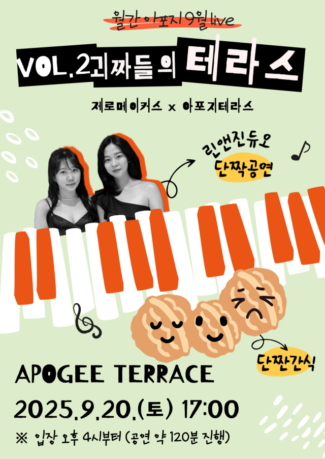 린앤진 듀오는 동의대 음악학과에서 클래식 피아노를 전공한 변혜린, 이은진 씨가 2024년 결성했다. 그동안 부산문화회관을 비롯해 부산 지역의 소규모 공연장에서 20여 차례의 공연을 가져왔다. 이번 무대에서는 살사 버전으로 편곡한 브람스의 ‘헝가리 무곡’ 등을 선보인다.