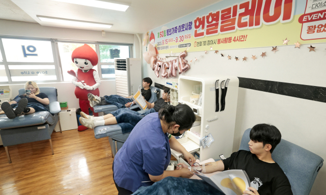 15일 동의대학교 헌혈의 집에서 열린 ‘제50회 동의 가족·이웃사랑 헌혈 릴레이’ 행사에서 학생들이 헌혈에 동참하고 있다. 헌혈의 집 동의대 센터는 지난 1999년 개소한 지역 최초의 대학 내 헌혈의 집으로 헌혈 릴레이를 통해 이웃사랑을 실천하고 있다.
