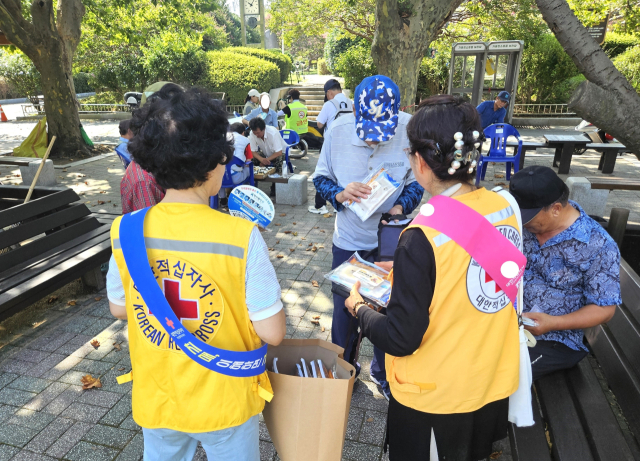 대한적십자사 부산지사(회장 서정의)는 지난 16일 제18회 치매극복의 날을 앞두고 부산 시민 300여 명 대상으로 치매 케어 세트와 치매 예방 리플렛을 배부하며 치매 친화 사회 조성을 위한 캠페인을 벌였다.