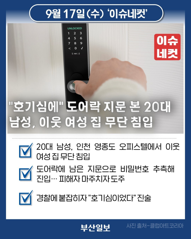 "호기심에 그랬다" 도어락 지문 본 20대 남성, 이웃 여성 집 무단 침입