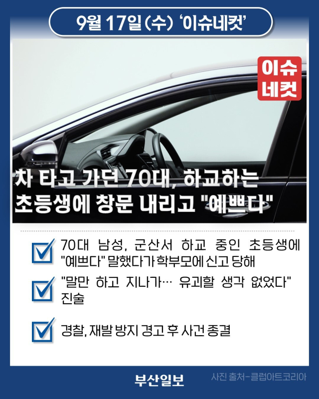 차 타고 가던 70대, 하교하는 초등생에 창문 내리고 "예쁘다"