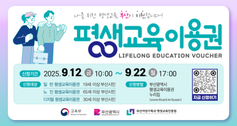 9/12(금)부터 9/22(월)까지, '부산광역시 평생교육이용권 누리집'을 통한 온라인 신청