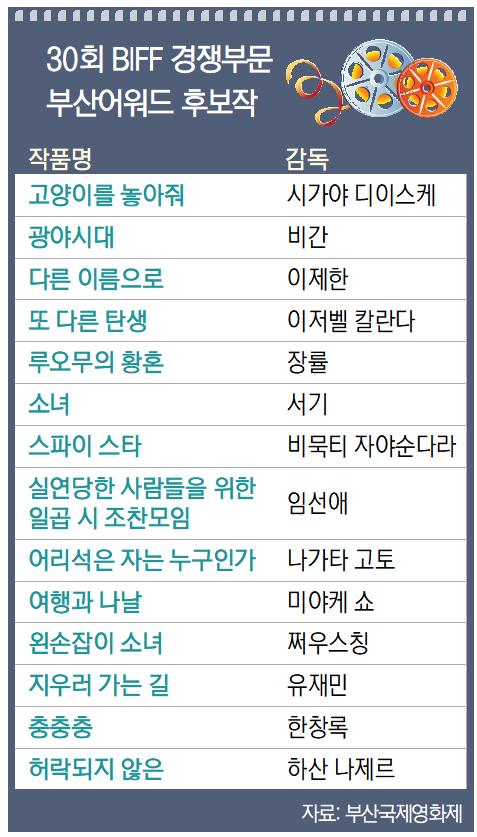 한편, 이번에 신설된 경쟁부문에는 아시아 주요 작품 14편이 초청됐으며, 대상·감독상·심사위원 특별상·배우상(2명)·예술공헌상 등 5개 부문 수상작이 선정된다. 수상자에게는 태국의 거장 아피찻퐁 위라세타쿤 감독이 디자인한 ‘부산 어워드’ 트로피와 상금이 수여된다. 결과는 오는 26일 폐막식장에서 발표된다. 대상 수상작은 폐막작으로 상영된다.