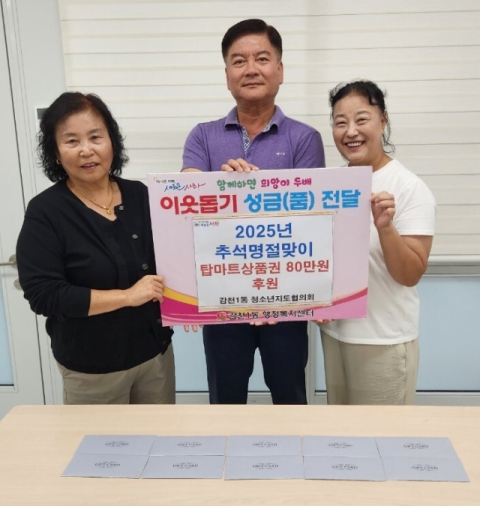 부산 사하구 감천1동 청소년지도협의회는 18일 추석 명절을 맞아 지역 내 저소득 청소년 가구를 위해 탑마트 상품권(80만 원 상당)을 감천1동 행정복지센터에 전달했다.