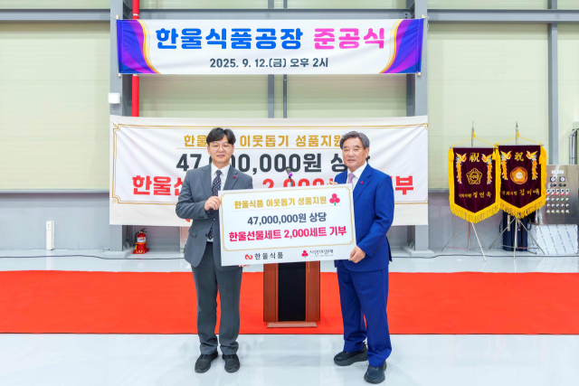 부산사회복지공동모금회(회장 이수태·부산사랑의열매)는 지난 12일 한울식품(대표 강인중)이 한울식품공장 준공식을 개최하며 성품 전달식을 진행했다고 밝혔다.