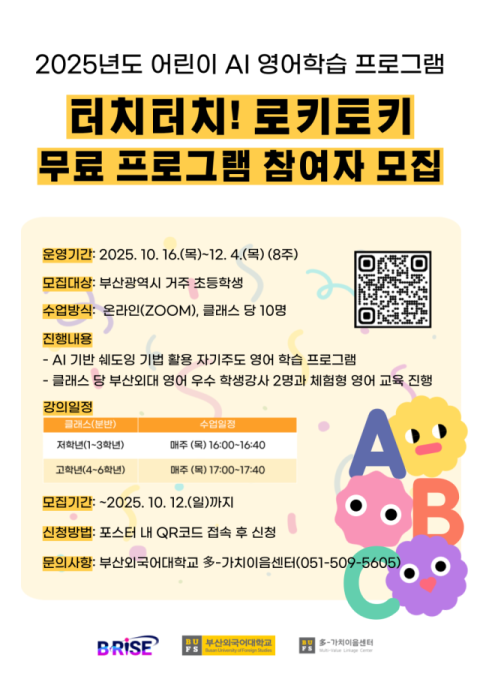 부산외대, 어린이 AI 영어 학습 프로그램 ‘터치터치 로키토키’ 초등생 모집