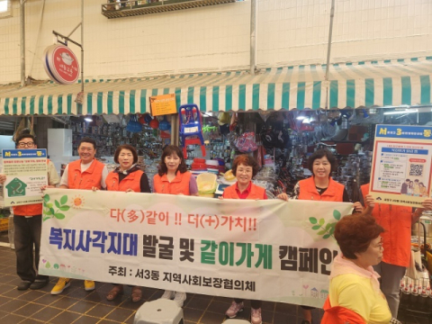 부산 금정구 서3동 지역사회보장협의체(공공위원장 김명실, 민간위원장 김효영)는 지난 17일 서동 미로시장 일대에서 복지사각지대 발굴 및 같이가게 홍보 캠페인을 추진했다.