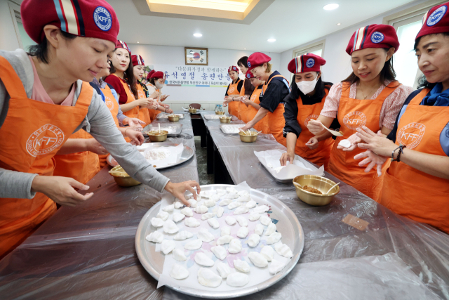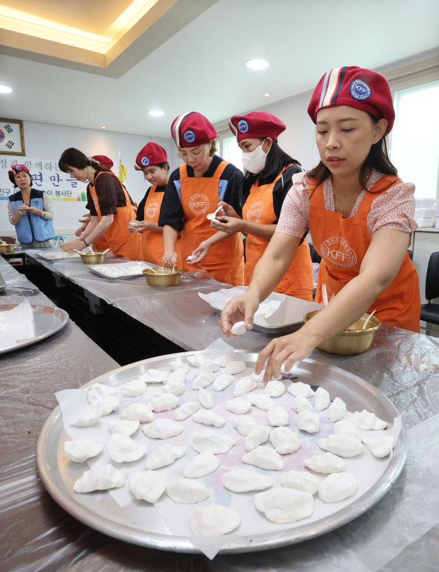 추석 명절을 10여일 앞두고 ‘다문화가정과 함께하는 추석명절 송편 만들기’ 행사가 23일 부산 부산진구 자유총연맹 부산진구지회에서 열렸다. 다문화가정 참가자와 자유총연맹 부산진구 어머니 포순이 봉사단이 함께 송편을 빚고 있다.