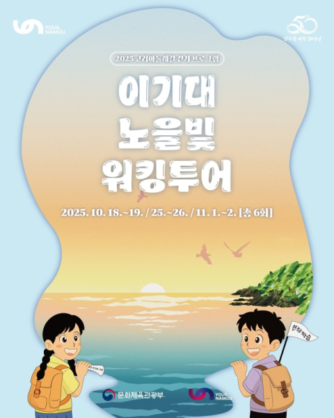 부산 남구(구청장 오은택)는 이기대 관광 활성화와 코리아둘레길 홍보를 위해 ‘이기대 노을빛 워킹투어’를 오는 10월 18일부터 11월 2일까지 매주 주말 오후 4시, 총 6회 운영한다고 밝혔다.