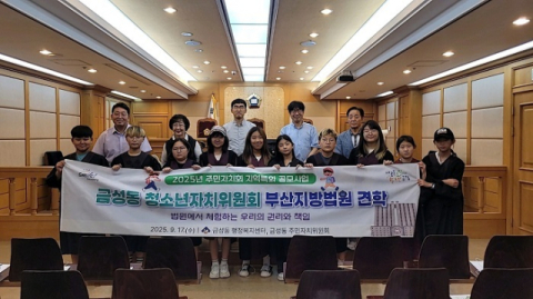유청길 금성동 주민자치위원장은 “이번 견학은 청소년들이 법치주의 가치를 몸소 체험할 수 있는 좋은 기회였다”며 “앞으로도 청소년들이 지역사회에서 바른 시민으로 성장할 수 있도록 의미 있는 자치 활동과 체험 프로그램을 꾸준히 지원하겠다”고 강조했다.