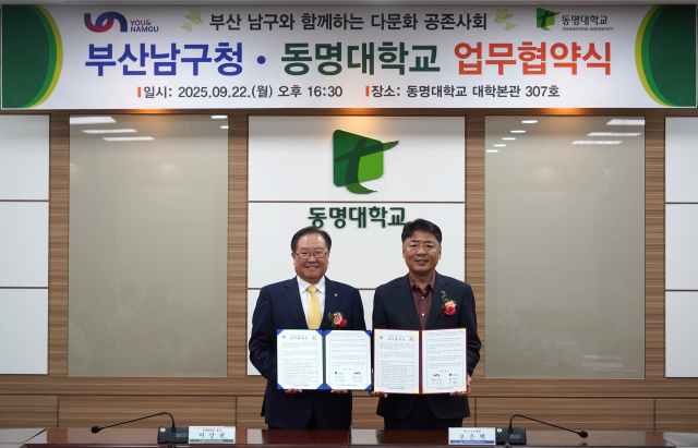 동명대학교(총장 이상천)와 부산 남구청(구청장 오은택)은 지난 22일 지역 내 결혼이민자와 다문화가정, 외국인 유학생 및 근로자들이 안정적으로 정착할 수 있도록 외국인 지원을 위한 업무협약을 체결했다.