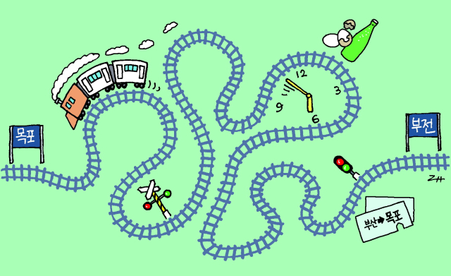 부산에서 목포로 가는 철길은 대륙 횡단 철도 수준으로 멀고도 험했다. 1990년대 운행 시간은 무려 12시간 반. 비둘기호 운행 편수가 적어 승객에 선택의 여지는 없었다. 부전역에서 오후에 출발한 기차는 동이 트기도 전에 목포역에 닿았다. 좌석에 앉아 밤새 뒤척이다 시내버스조차 다니지 않는 어두컴컴한 역 광장에 내려섰을 때의 낭패감은 30년이 넘었는데도 잊히지 않는다. 현재 부전~목포는 6시간 40분으로 절반 단축됐지만, 여전히 아련한 먼 길이다. 목포행 완행열차의 추억을 떠올린 건 목포∼보성 구간이 27일 신설 개통된다는 소식 때문이다. 목포보성선이 뚫리면서 해당 구간이 1시간 이상 빨라졌고, 부산 기준 4시간 40분 거리로 좁혀졌다.