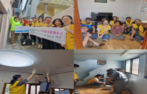이날 행사에는 호산나교회에서 20여 명의 자원봉사자들이 참여로 재능 기부하여 도배, 장판, LED 조명 교체, 도색 등을 진행했다.