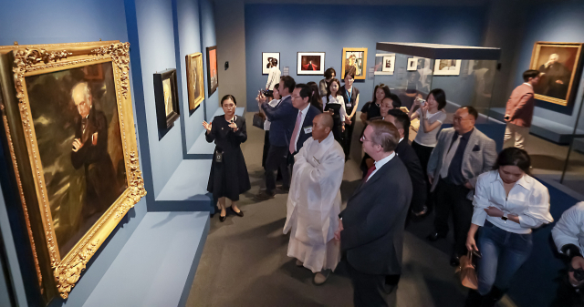 부산박물관과 영국 국립초상화미술관이 공동 주최하는 국제교류전 ‘거장의 비밀: 셰익스피어부터 500년의 문학과 예술’ 개막식이 29일 부산 남구 부산박물관에서 열렸다. 영국 문학 거장 78인의 초상화를 아시아 최초로 부산에서 볼 수 있다. 김종진 기자 kjj1761@