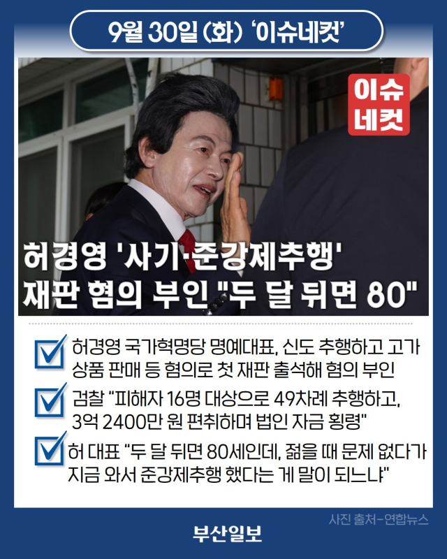 신도들을 추행하고 고가의 상품을 판매한 혐의 등을 받는 허경영 국가혁명당 명예대표가 30일 첫 재판에 출석해 혐의를 전면 부인했습니다. 검찰은 "피고인은 피해자들을 기만해 3억 2400여만 원을 편취했고, 주식회사 초종교하늘궁과 하늘궁의 법인 자금을 횡령, 부정한 방법으로 정치자금으로 받았다"며 "2017년부터 2023년까지 피해자 16명을 49차례에 걸쳐 추행했다"고 공소사실을 설명했습니다. 허 대표는 "지금 여기 법원에 와 있는 모든 서류가 경찰에서 1년 반 동안 만들어낸 것이다. 저는 횡령을 하거나 추행을 하는 사람이 아니다"며 "이제 두 달 뒤면 80세인데, 젊을 때는 아무 문제 없던 사람이 지금 와서 준강제추행을 했다는 게 말이 되느냐"고 반박했습니다. 허 대표는 "대통령 선거에 3번, 국회의원·서울시장 선거에 8번 나가면서 정치자금을 노린 적이 없다. 누구보다 법을 잘 안다"며 "무료 급식을 하면서 세금을 수십억 내는 사람이 돈에 무슨 횡령을 하느냐"고 토로했습니다. 이어 "제가 지금 5개월째 구속돼 있는데 왜 구속돼 있어야 하는지 알 수 없다"고 덧붙였습니다.