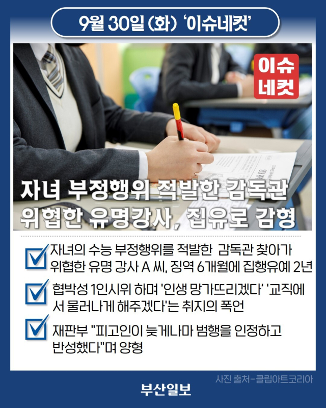 자녀 부정행위 적발한 수능감독관 위협한 유명강사, 집유로 감형