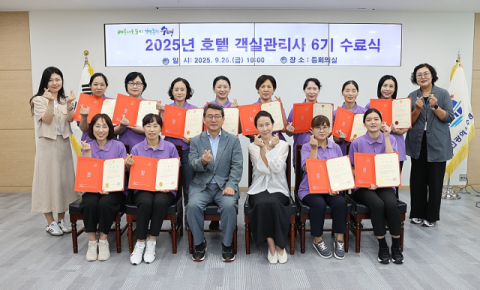 부산 수영구(구청장 강성태)에서는 2025년 부산광역시 구·군 맞춤형 일자리 창출 지원 공모사업으로 선정된 ‘호텔서비스 전문인력 양성사업’을 지난 26일 객실관리사 6기 수료식을 끝으로 완료했다고 밝혔다.