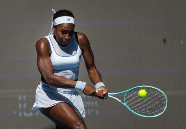 미국의 코코 고프가 30일 중국 베이징에서 열린 차이나 오픈 테니스 대회에서 스위스의 벨린다 벤치치와 경기에서 힘차게 리턴샷을 날리고 있다. EPA연합뉴스