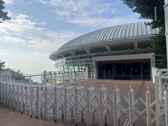 출입이 통제된 누리마루 APEC하우스(위)와 동백공원 통제 안내 현수막(아래). 양보원 기자