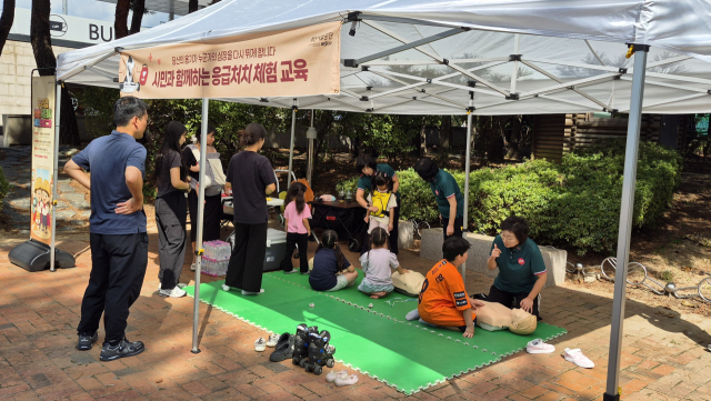 부산시설공단(이사장 이성림)은 지난달 27일 스포원파크에 교육부스를 마련해 응급 상황 대비 역량을 강화하기 위해 방문객을 대상으로 ‘심폐소생술 교육’을 진행했다.
