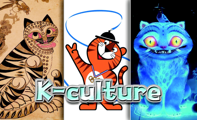 단군신화에서 호랑이는 곰에 밀렸지만, 우리 문화의 대표적인 상징물이었다. 고구려 고분벽화 ‘사신도’에서는 용과 함께 영물로 신성시되었다. 조선 중기부터 호랑이는 신령스러운 이미지에서 벗어나 익살스럽고 개성이 돋보이는 형태로 변모한다. 조선 후기 민화에서는 해학과 익살, 재치가 물씬 풍기는 독창적인 캐릭터로 사랑을 받았다. 이 가운데 호랑이와 까치를 같이 그린 그림인 ‘호작도’가 대표적이다. 특히 19세기 ‘호작도’는 ‘피카소의 호랑이’로 불린다. 단순한 선과 해학적인 표정, 추상적 표현법이 피카소 화풍을 연상시키기 때문이다.