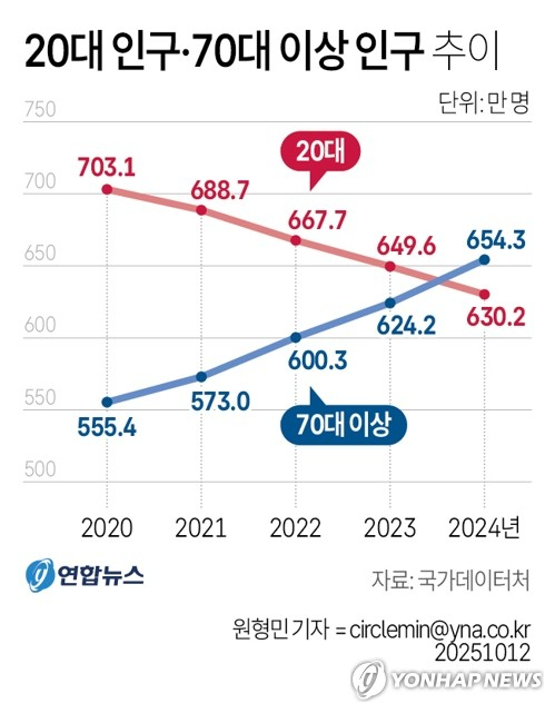 20대 인구, ‘70대 이상’에도 추월당했다…존재감 약해진 20대