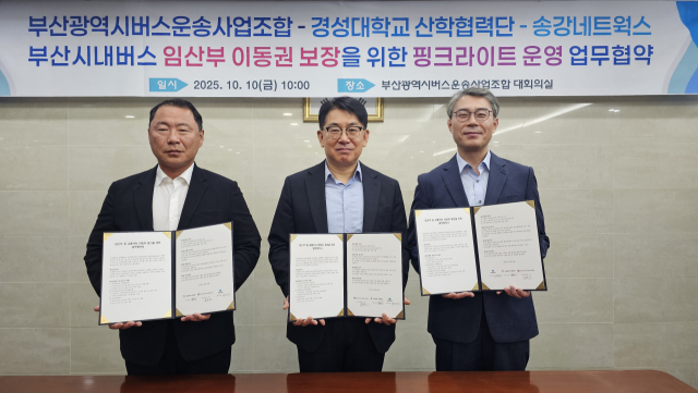 부산광역시버스운송사업조합(이사장 성현도)은 임산부의 날(10월 10일)을 맞아 경성대 산학협력단, 송강네트웍스와 함께 교통약자를 돕는 업무협약을 체결했다.