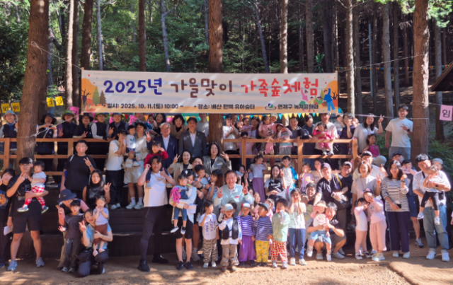 연제구(구청장 주석수)는 지난 11일 배산 편백 유아숲터에서 40여 가족 127명이 참여해 다양한 프로그램을 체험하는 ‘2025년 가을맞이 가족숲체험’ 행사를 개최했다.