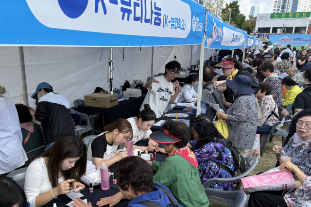 또 인간공학과는 스마트폰 사용 안내, 컴퓨터소프트웨어공학과는 보이스피싱 예방 교육, 레저스포츠학과는 밴드와 마사지볼을 활용한 홈트레이닝 교육을 펼쳤고 K-뷰티학과는 두피마사지와 네일아트 체험을 제공했다.