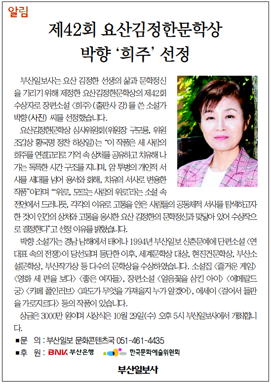 [알림] 제42회 요산김정한문학상에 박향 '희주'