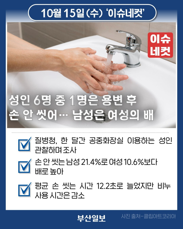 성인 6명 중 1명은 용변 후 손 안 씻어… 남성은 여성의 배 [이슈네컷]