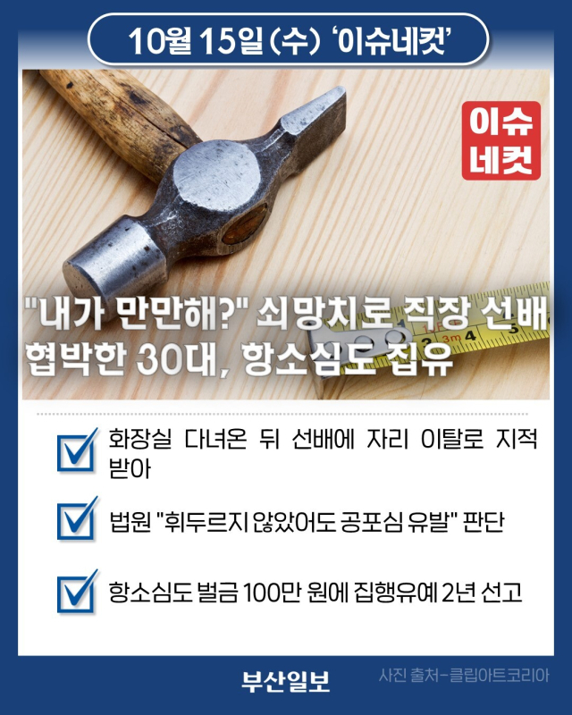 "내가 만만해?" 쇠망치로 직장 선배 협박한 30대, 항소심도 집유