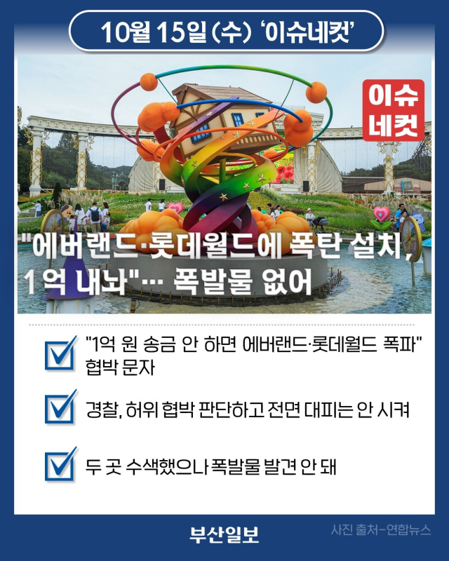 "에버랜드·롯데월드에 폭탄 설치, 1억 내놔"… 폭발물 없어