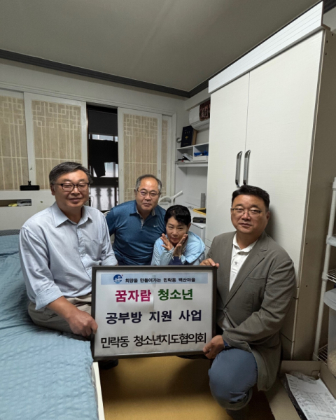 부산 수영구 민락동 행정복지센터(동장 박해원)는 14일 민락동 청소년지도협의회(회장 정재환) 주관으로 저소득 청소년 가정에 쾌적한 학업 및 주거 환경을 제공하기 위한 꿈자람 청소년 공부방 환경 개선 지원 사업을 추진했다고 밝혔다.
