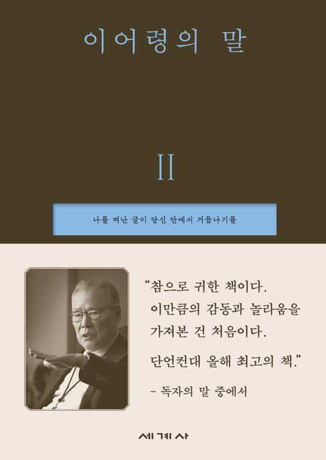 1권에 미처 담지 못한 미공개 강연을 비롯해 새로운 명문들이 담겼다. 생전 그는 “한 권을 통해 후대의 독자들이 내가 평생 해온 지적 탐험을 쉽게 이해하면 좋겠다”며, 길을 잃고 헤매고 있을 후대에게 등불과 같은 책을 남기고자 했다. 그의 뜻에 따라 수년간 기획과 편집을 거쳐 완성된 이어령의 유작이자 지적 유산이다. 이어령 지음/세계사/372쪽/2만 2000원.