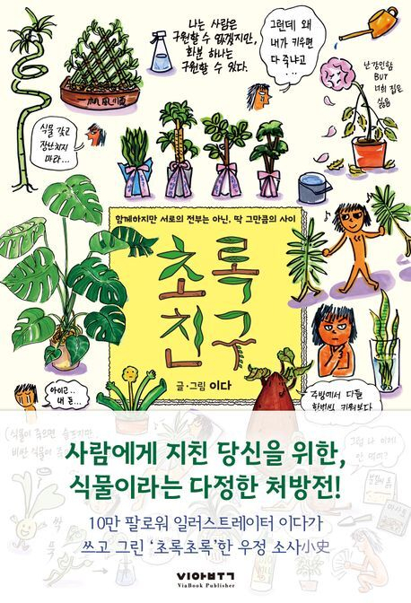 개성 있는 그림과 날카로운 관찰력, 그리고 재치 있는 유머로 많은 독자의 사랑을 받아온 일러스트레이터 이다가 반려식물을 키우며 겪은 이야기와 인간관계에 대한 고찰을 담은 특별한 그림 에세이. 오랫동안 관찰해온 반려식물들에 얽힌 에피소드, 그리고 인간관계에 대한 고민과 성찰을 한 권의 책으로 묶었다. 이다 글·그림/비아북/216쪽/1만 8000원.