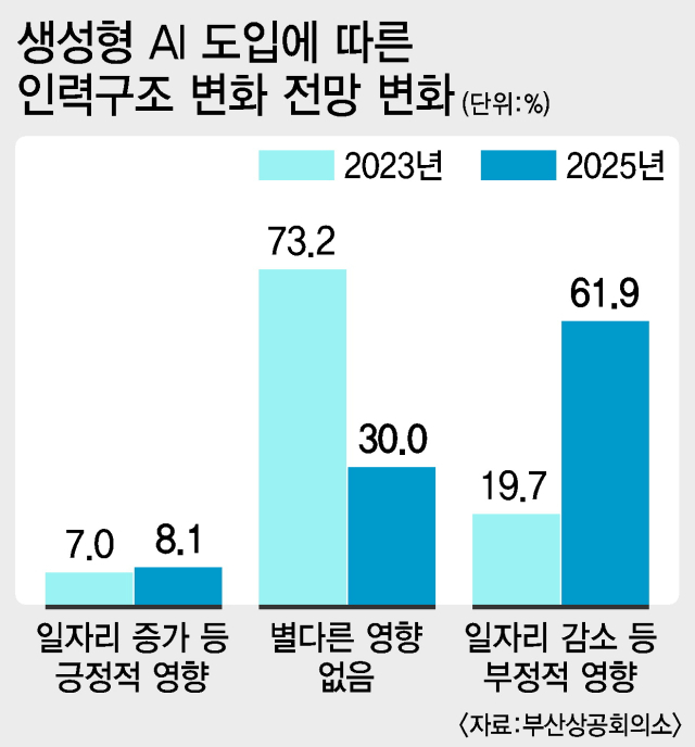 부산상공회의소 조사연구팀 관계자는 “생성형 AI의 빠른 진화로 활용 능력 격차가 곧 기회의 격차로 이어질 수 있다”면서 “지역 기업들도 AI 교육과 활용 가이드라인 구축이 반드시 필요하다”고 말했다.