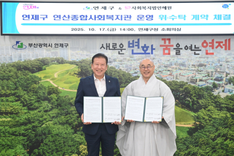부산 연제구(구청장 주석수)는 17일 중구청 소회의실에서 연산종합사회복지관 수탁기관인 사회복지법인 혜원(대표이사 정일현)과 시설 운영·관리 전반에 관한 위·수탁 계약을 체결했다.