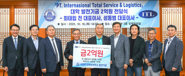 국립한국해양대학교(총장 류동근)는 지난 16일 대학본부에서 PT.Internasional Total Service & Logistics(PT.ITL·대표이사 성동범)과 대학 발전기금 전달식을 개최했다고 밝혔다.
