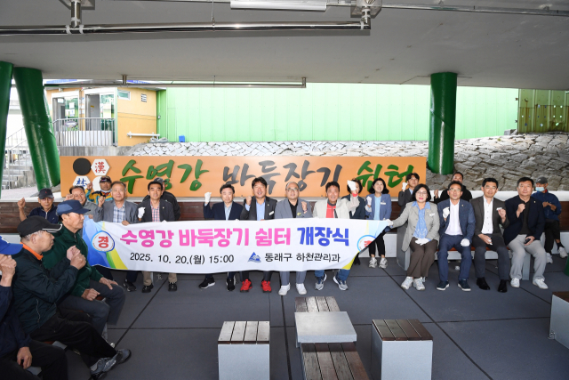 부산 동래구(구청장 장준용)는 지난 20일 안락2동 수영강변 원동고가 하부에 노후 주민휴게시설 개선사업으로 3개월여 공사 끝에 ‘수영강 바둑장기 쉼터’를 완공하고 주민들과 함께 개장식을 가졌다.