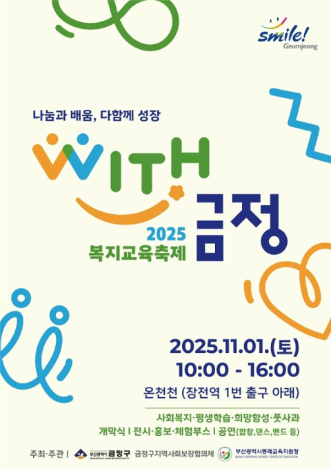 금정구 관계자는 “위드금정은 단순한 축제를 넘어 복지와 교육, 세대와 세대, 민·관·학 협력, 공감과 성장을 하나로 잇는 상징적인 자리”라며 “구민 여러분이 직접 참여하고 즐기며, 함께 만들어가는 금정구의 대표 축제로 자리매김하길 기대한다”고 전했다.